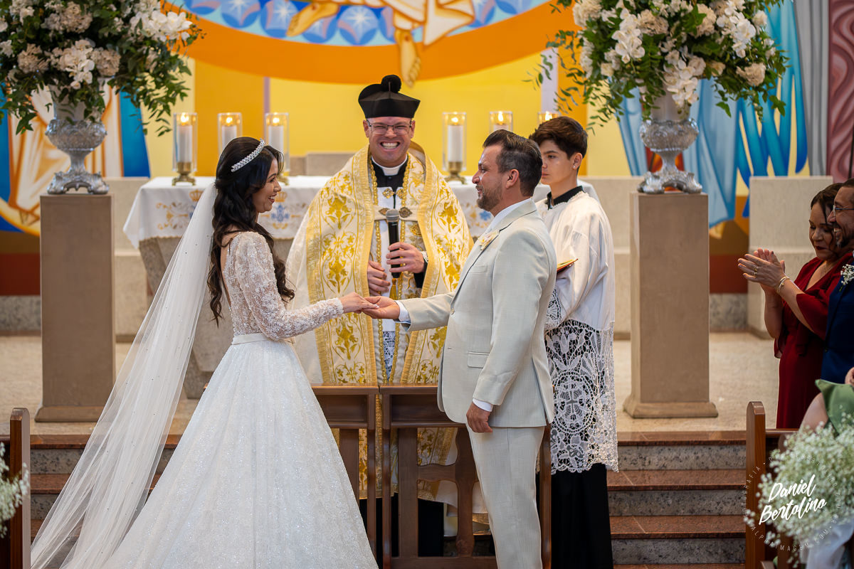 O casamento de Márcia e Jhonatan foi marcado por momentos de fé, emoção e muita celebração. A cerimônia aconteceu no tradicional Santuário de Nossa Senhora Aparecida, em Barra Bonita, onde o casal trocou votos em meio a uma atmosfera de espiritualidade e amor. Rodeados por amigos e familiares, cada detalhe refletiu a essência dos noivos e a importância desse momento em suas vidas.